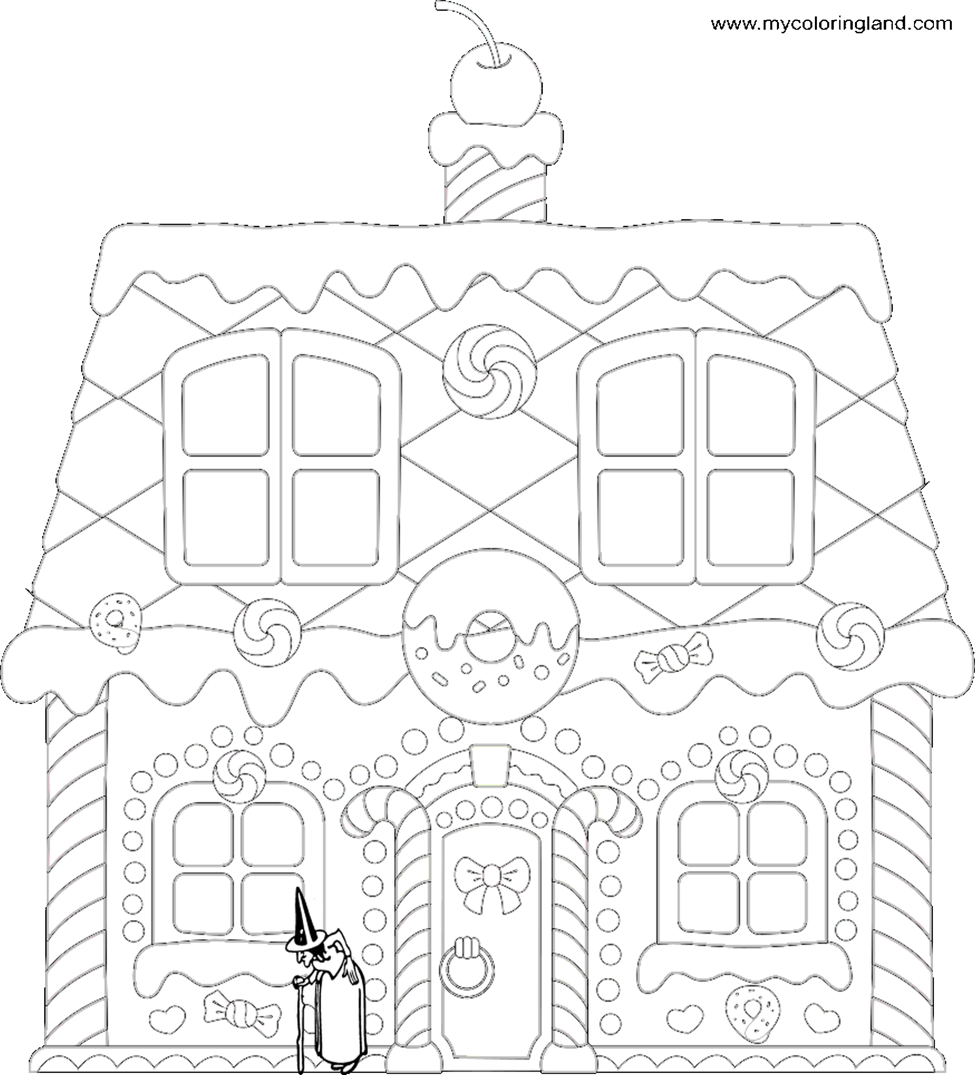 Beware of the gigantic gingerbread houses with cannibalistic witches! Start with the smaller one, possibly in a black-and-white version, so you can control them with your coloring pencils.